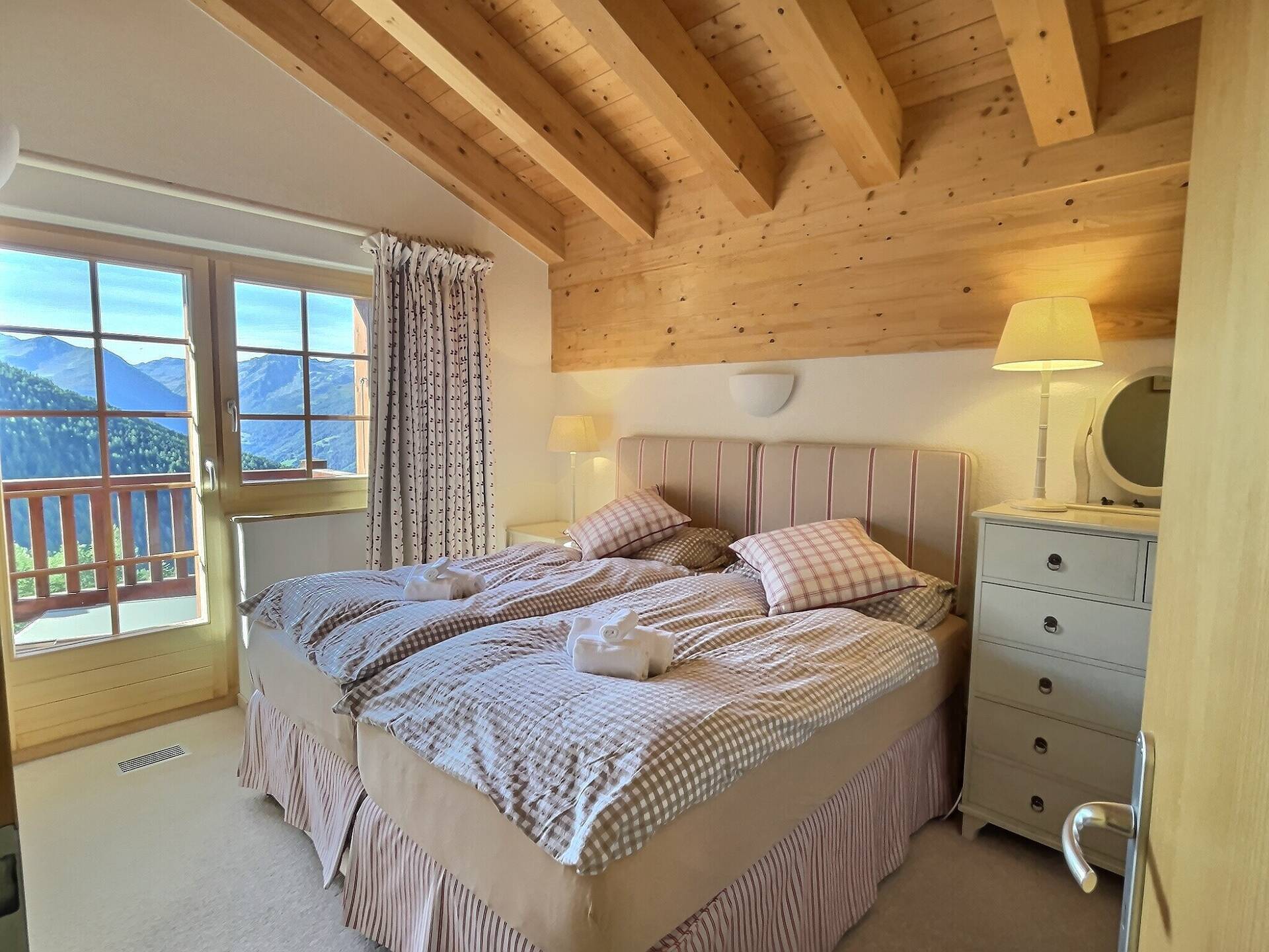 Dans les grandes lignes :Appartement pour 6 personnes situé aux combles de l’immeuble Chandolines, très confortable avec toutes les commodités liés à un objet de finition luxueuse, Il est décoré avec un style montagnard et beaucoup de détail sympathique.En détail :Extérieur : balcon-terrasse avec mobilier de jardin et vue sur la valléeIntérieur : 100m2, hall d'entrée avec vestiaire, grand séjour avec canapé d'angle, TV câblée, wifi, poêle suédois. Chambres : 3 chambres: 1 chambre avec grand lit et salle de bain privée avec douche, WC et lavabo. 1 chambre avec deux lits individuels côte à côte et 1 chambre avec lit double. Armoires encastrées pour rangement.Sanitaires : 1 salle de bain avec baignoire, WC et lavabo.Cuisine : cuisine ouverte avec lave-vaisselle, four à micro-ondes, grille-pain, bouilloire, plaques vitro-cérame, congélateur séparé du frigo, machine à laver.Divers : Place de parc intérieure n°J1 au parking Artemesia, ANIMAUX NON ADMIS, NON FUMEUR,Linge : La location de linge est obligatoire et les lits seront préparés à votre arrivée. Le prix de la literie est comprise dans le prix de location