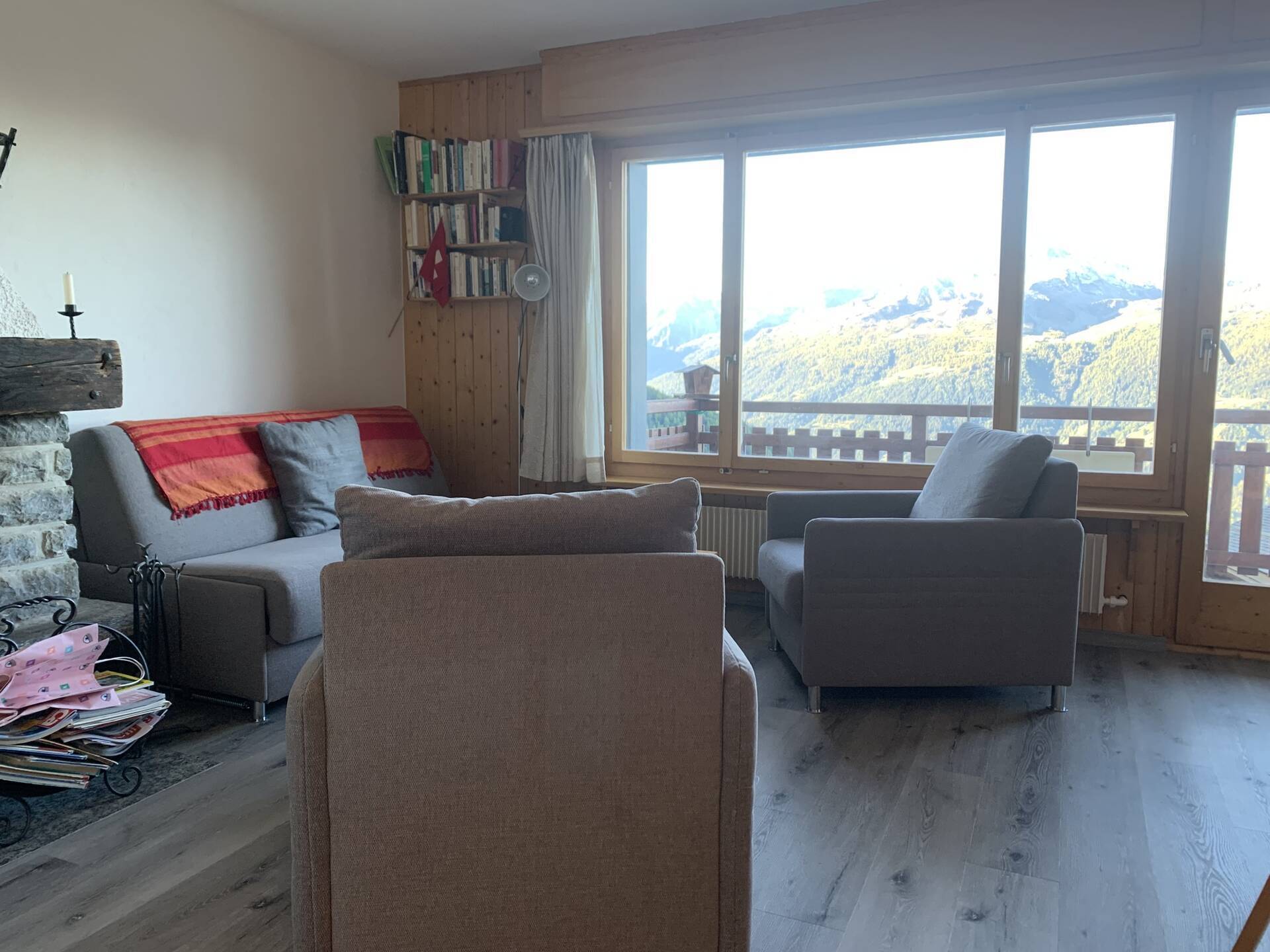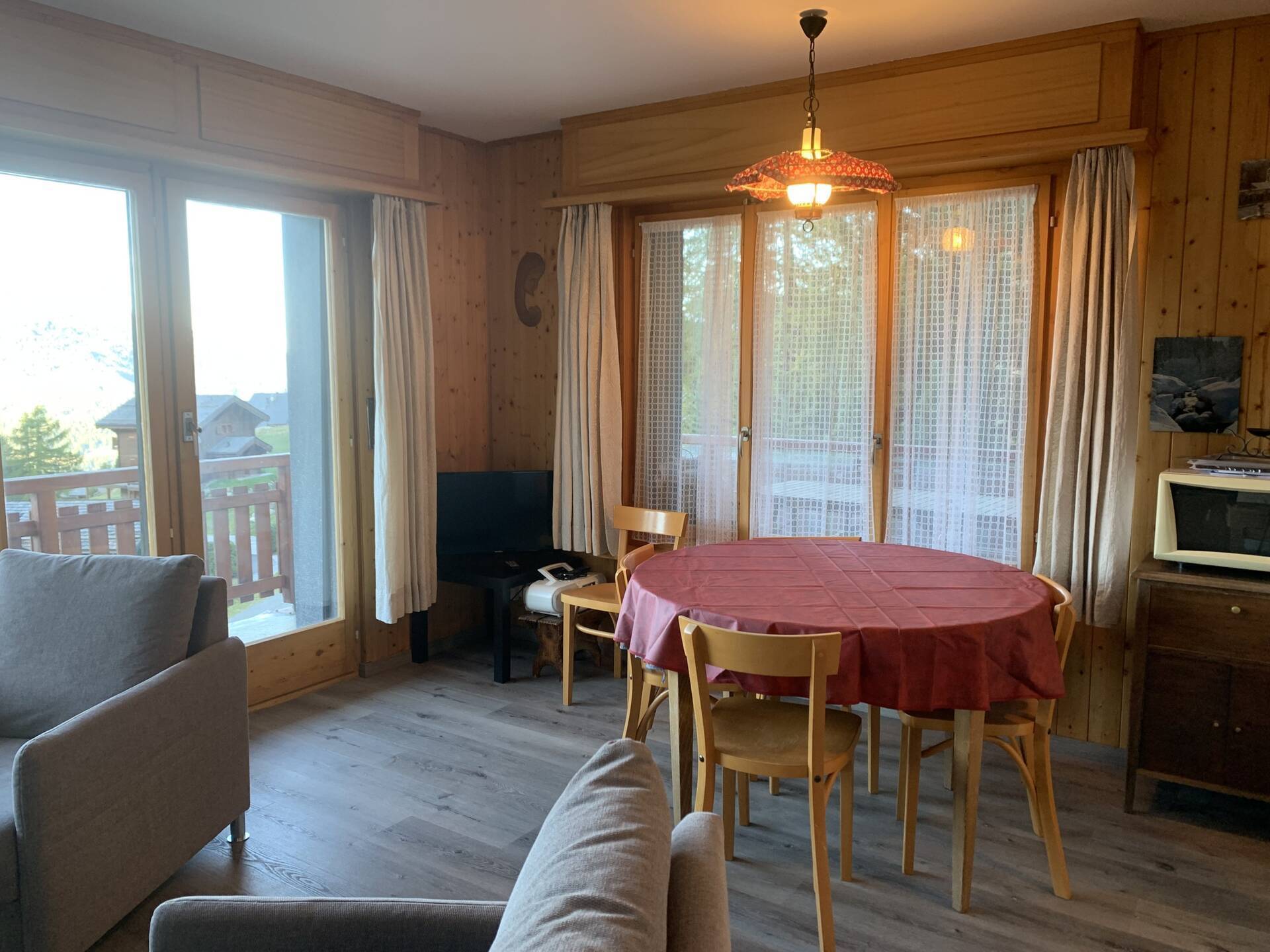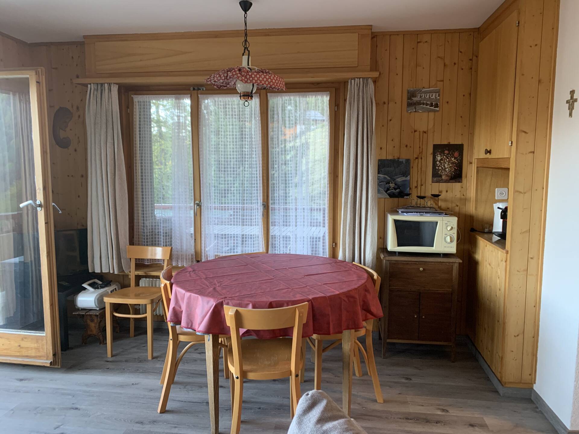 Extérieur : balcon avec mobilier extérieur. intérieur : 50m2, séjour avec cheminée, canapé, fauteuils, TV câblée - WIFI, coin à manger.Chambres : 1x2 lits simples, 1x1 lit double, armoires de rangement pour habits.Sanitaires : 1x baignoire et WC.Cuisine : cuisinière électrique, lave-vaisselle, Nespresso, mirco-ondes, four, réfrigérateur, set raclette set fondue, grille-pain, bouilloire.Divers : 2ème étage, place de parc extérieure devant l’immeuble N°4, ANIMAUX NON ADMIS, NON FUMEUR, radio Hi-Fi.Linge : La location du linge est comprise dans le prix de location.