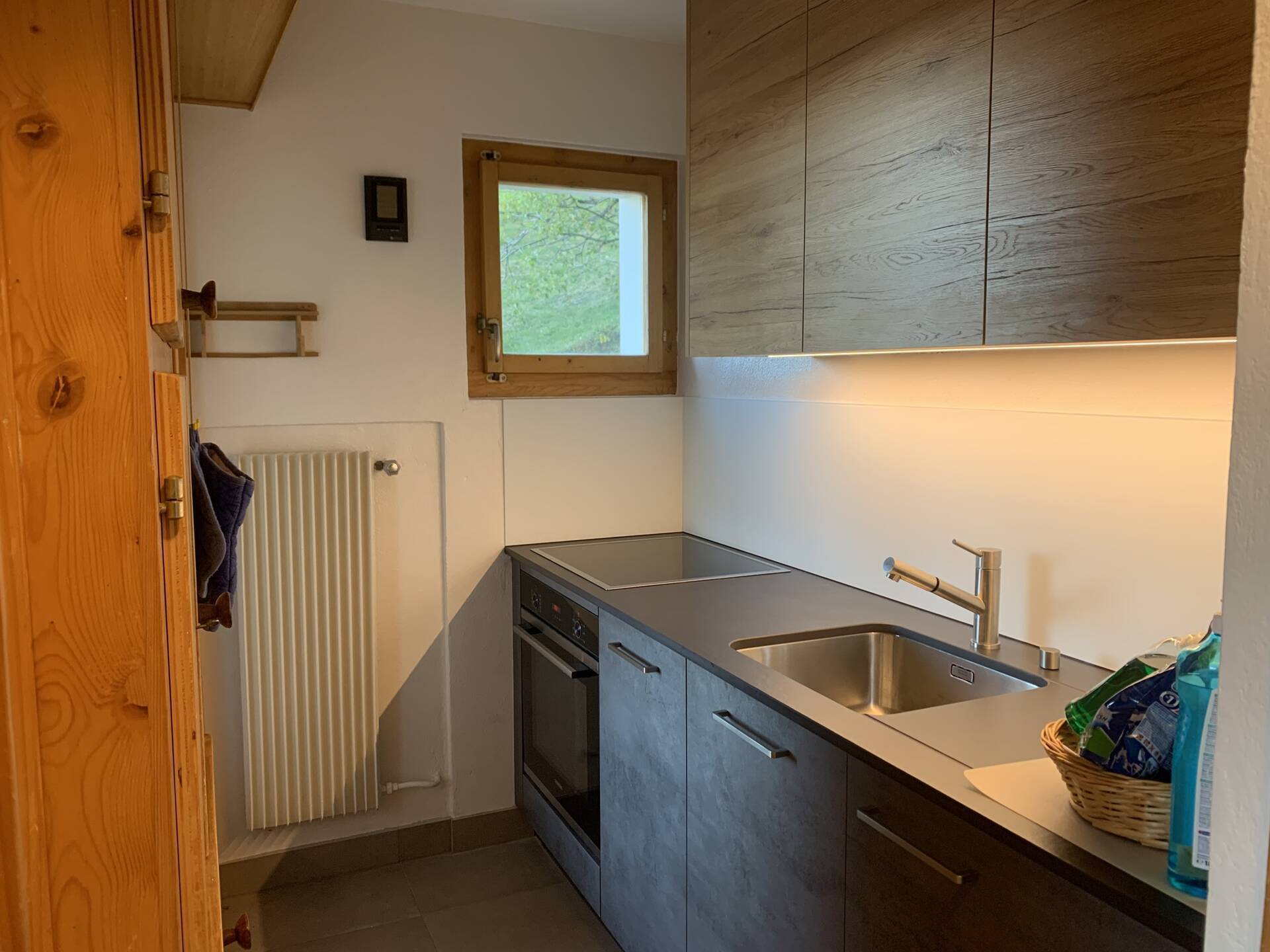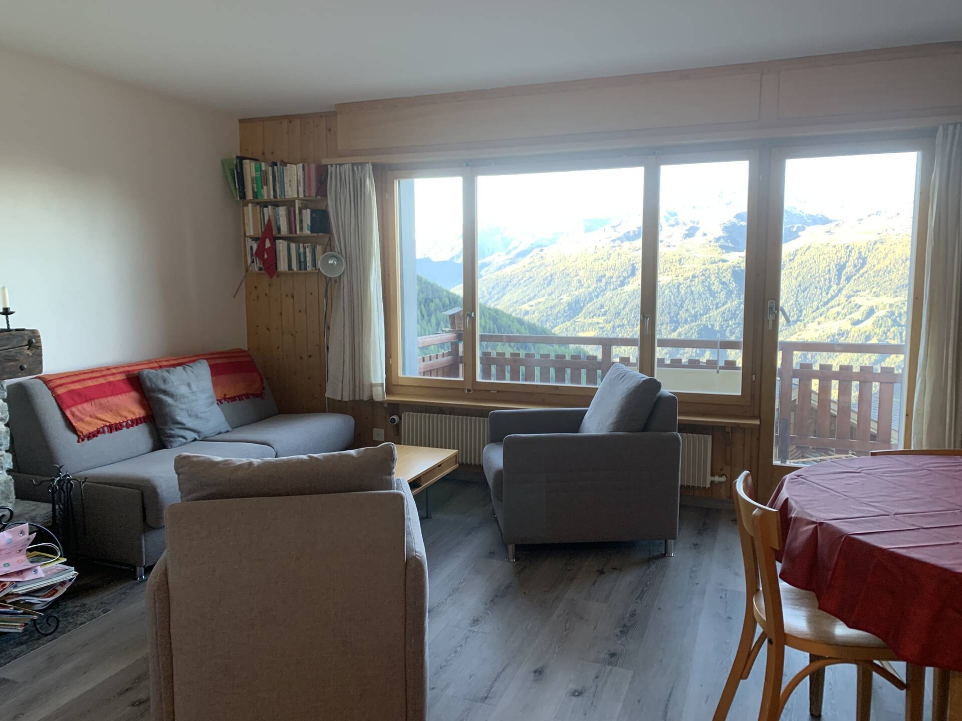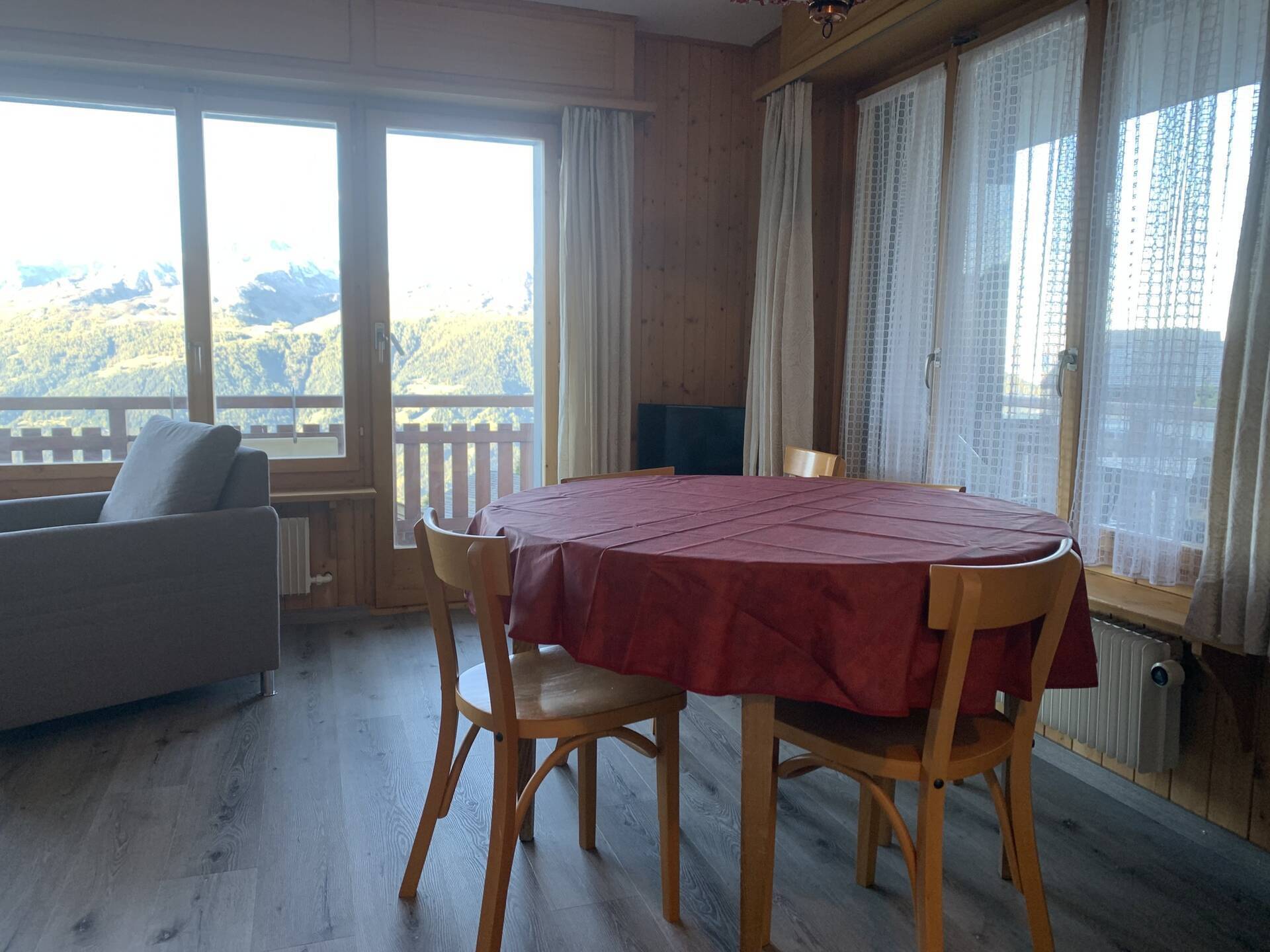 Extérieur : balcon avec mobilier extérieur. intérieur : 50m2, séjour avec cheminée, canapé, fauteuils, TV câblée - WIFI, coin à manger.Chambres : 1x2 lits simples, 1x1 lit double, armoires de rangement pour habits.Sanitaires : 1x baignoire et WC.Cuisine : cuisinière électrique, lave-vaisselle, Nespresso, mirco-ondes, four, réfrigérateur, set raclette set fondue, grille-pain, bouilloire.Divers : 2ème étage, place de parc extérieure devant l’immeuble N°4, ANIMAUX NON ADMIS, NON FUMEUR, radio Hi-Fi.Linge : La location du linge est comprise dans le prix de location.