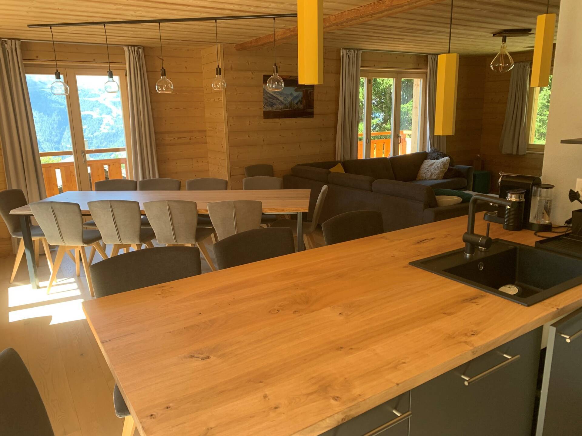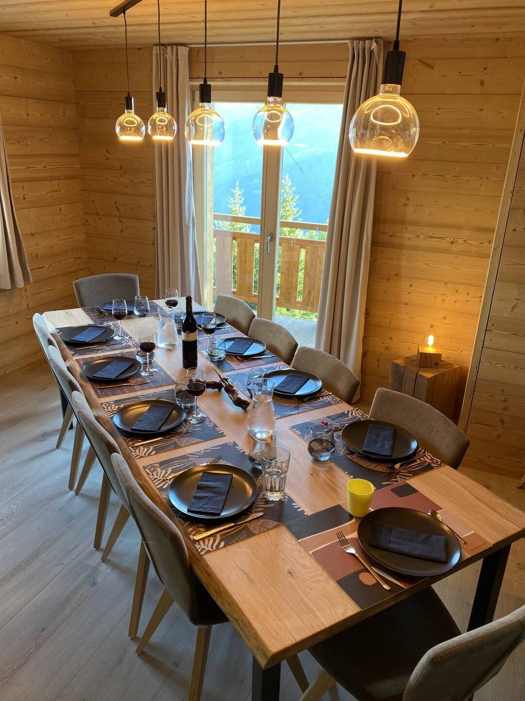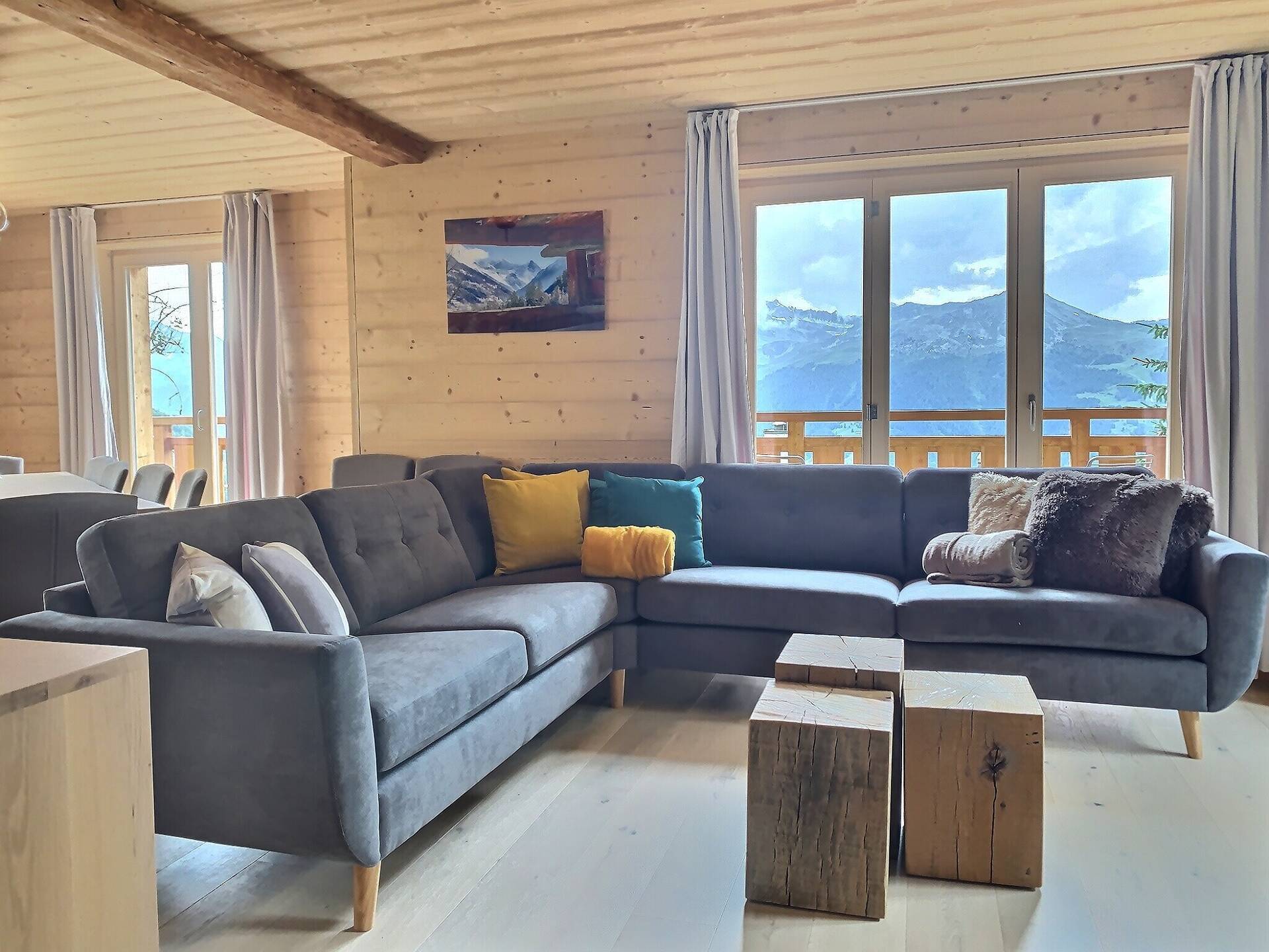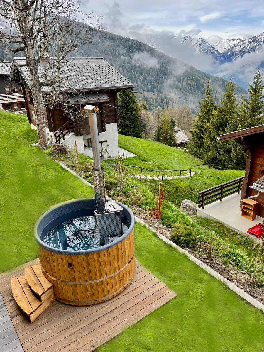 Luxury chalet on nearly 200m². OUTSIDE: Wood-fired Nordic bath - Panoramic terrace - Side terraces - Outdoor furniture - OFYR BBQ - Garden // GROUND FLOOR: Open kitchen (fully equipped) - Dining area and bar - Large living room - Lounge - Cloakroom - WC (with washing machine and tumble dryer) // LOWER GROUND FLOOR : 3 Bedrooms (2x double beds and 1x 4 single beds) - 2 Bathrooms with WC (1x shower - 1x bathtub) - Lounge with large TV // FLOORS: 2 Bedrooms (1x double bed and 2x single beds) - Bathroom with WC. TV + INTERNET + WIFI. Bed linen and towels INCLUDED. NO PETS, NO SMOKING. More info and photos on WWW.CHALET-MARGARET.CH