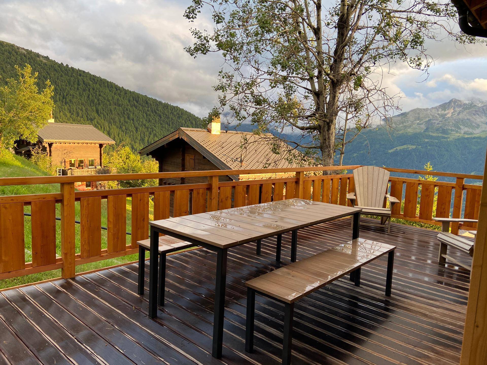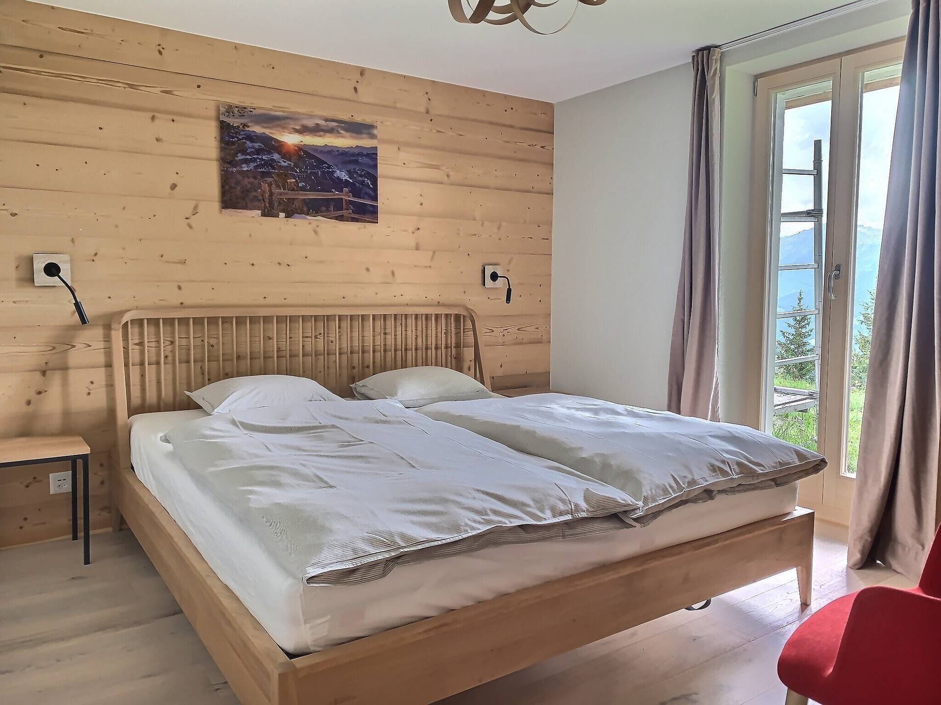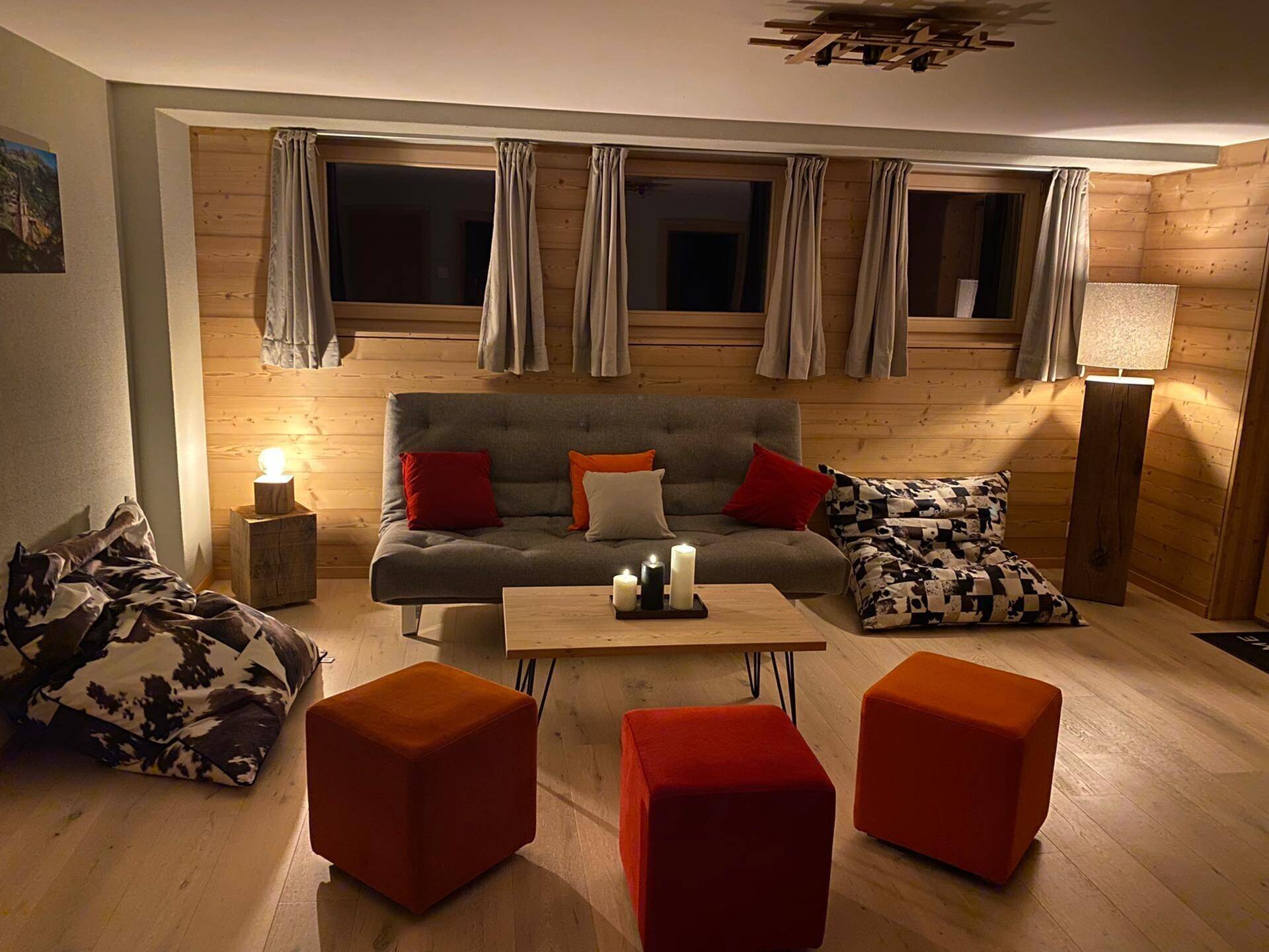 Luxury chalet on nearly 200m². OUTSIDE: Wood-fired Nordic bath - Panoramic terrace - Side terraces - Outdoor furniture - OFYR BBQ - Garden // GROUND FLOOR: Open kitchen (fully equipped) - Dining area and bar - Large living room - Lounge - Cloakroom - WC (with washing machine and tumble dryer) // LOWER GROUND FLOOR : 3 Bedrooms (2x double beds and 1x 4 single beds) - 2 Bathrooms with WC (1x shower - 1x bathtub) - Lounge with large TV // FLOORS: 2 Bedrooms (1x double bed and 2x single beds) - Bathroom with WC. TV + INTERNET + WIFI. Bed linen and towels INCLUDED. NO PETS, NO SMOKING. More info and photos on WWW.CHALET-MARGARET.CH