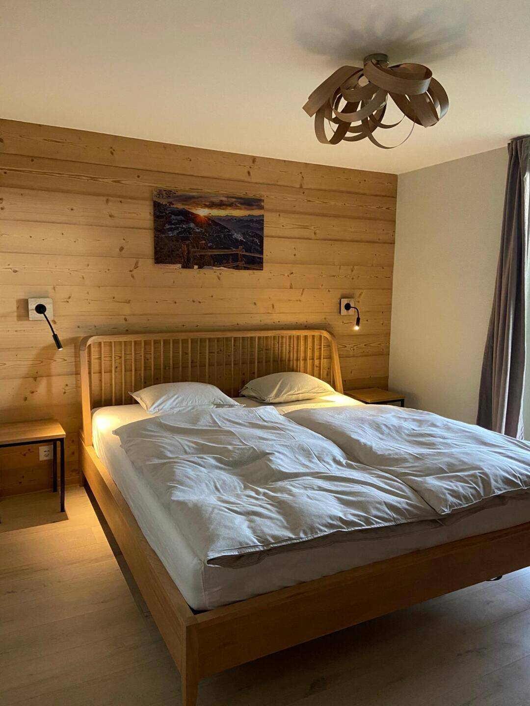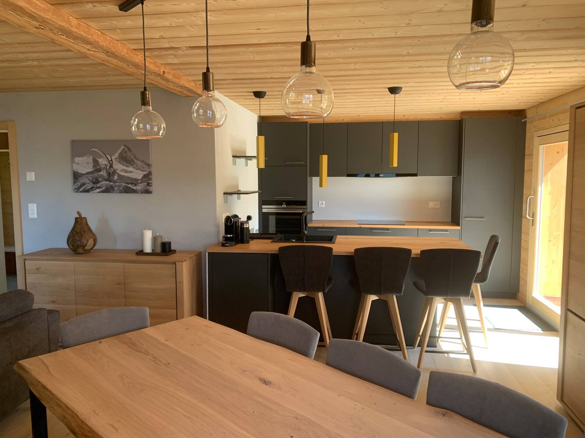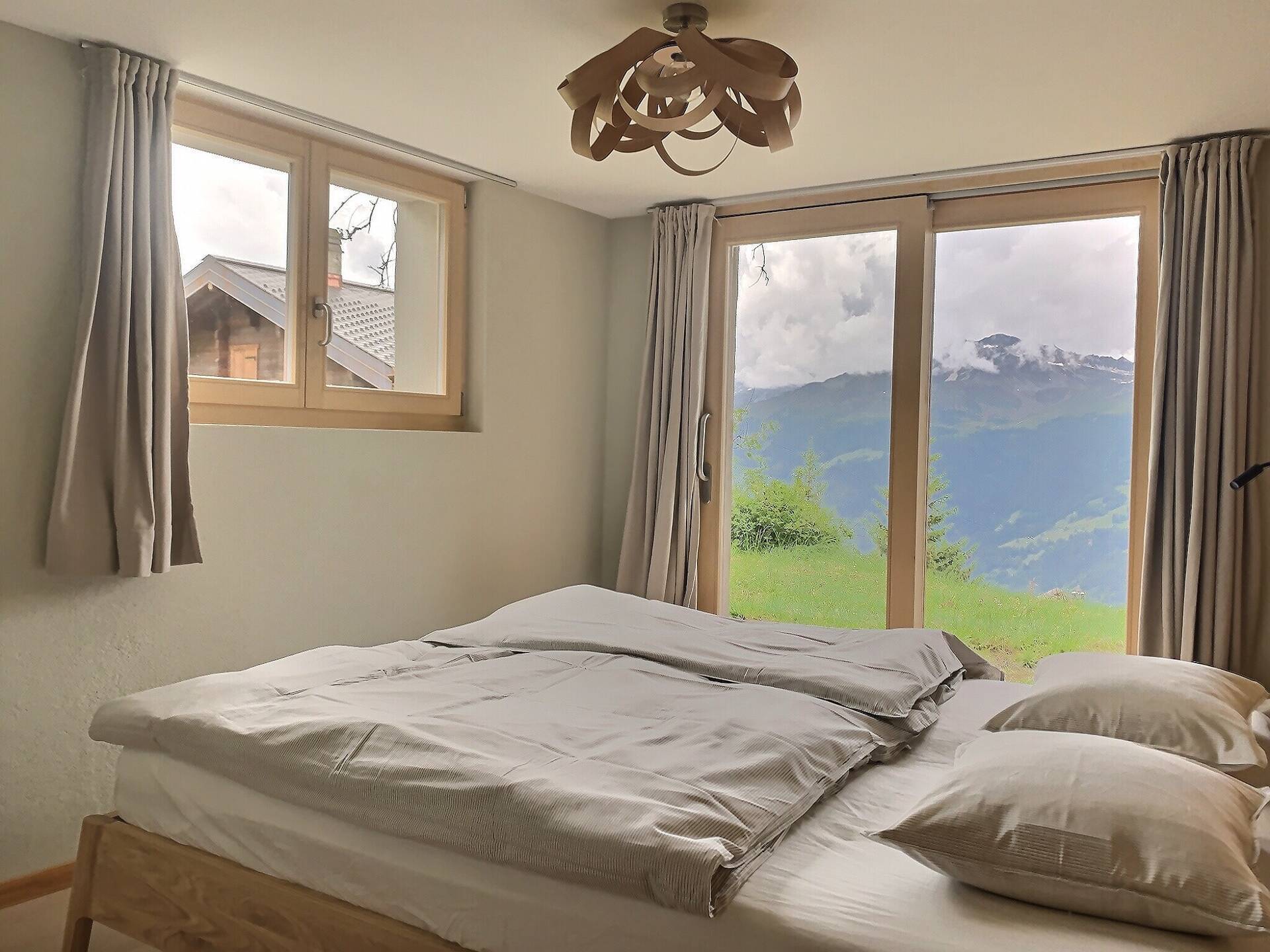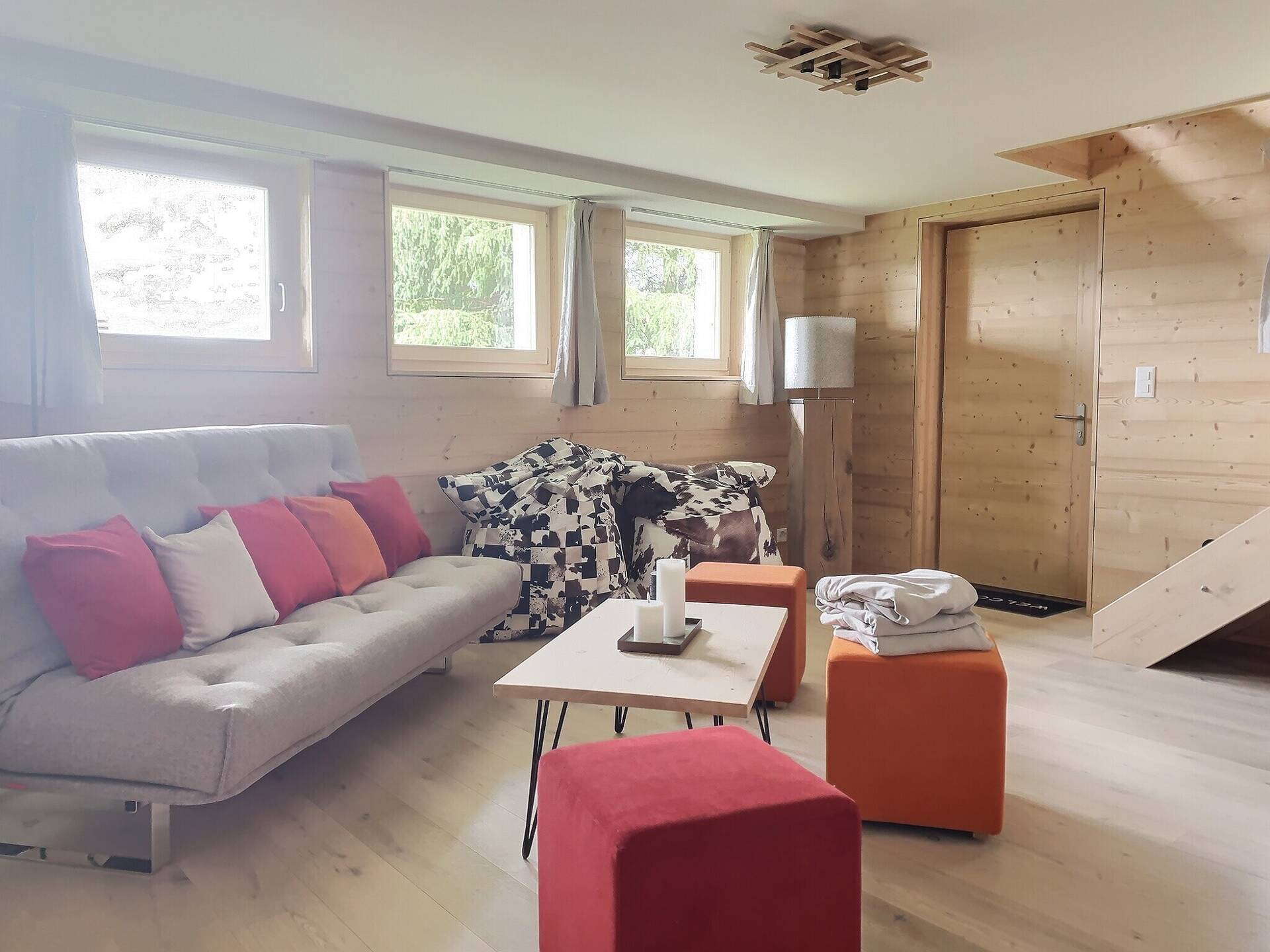 Luxury chalet on nearly 200m². OUTSIDE: Wood-fired Nordic bath - Panoramic terrace - Side terraces - Outdoor furniture - OFYR BBQ - Garden // GROUND FLOOR: Open kitchen (fully equipped) - Dining area and bar - Large living room - Lounge - Cloakroom - WC (with washing machine and tumble dryer) // LOWER GROUND FLOOR : 3 Bedrooms (2x double beds and 1x 4 single beds) - 2 Bathrooms with WC (1x shower - 1x bathtub) - Lounge with large TV // FLOORS: 2 Bedrooms (1x double bed and 2x single beds) - Bathroom with WC. TV + INTERNET + WIFI. Bed linen and towels INCLUDED. NO PETS, NO SMOKING. More info and photos on WWW.CHALET-MARGARET.CH