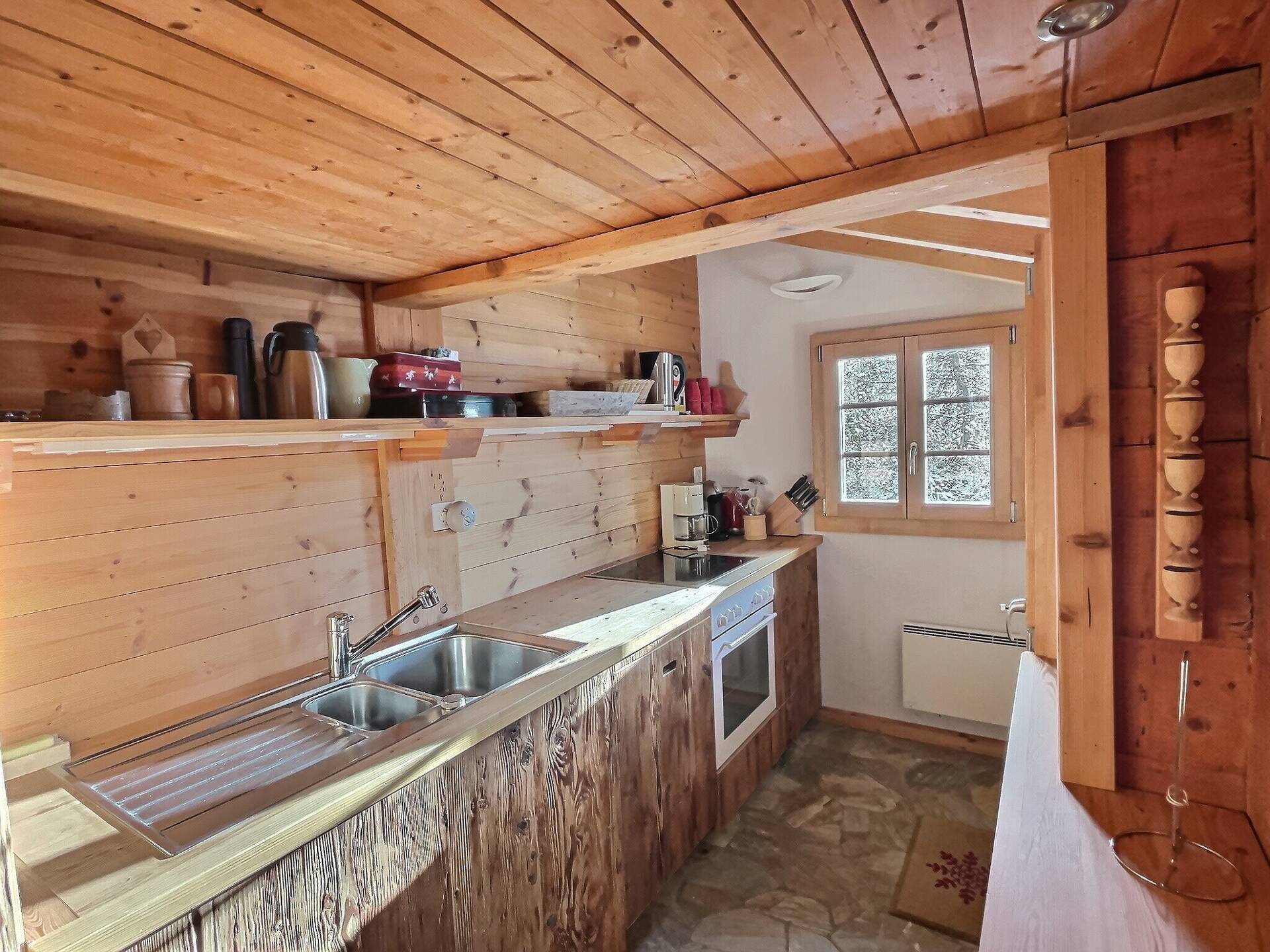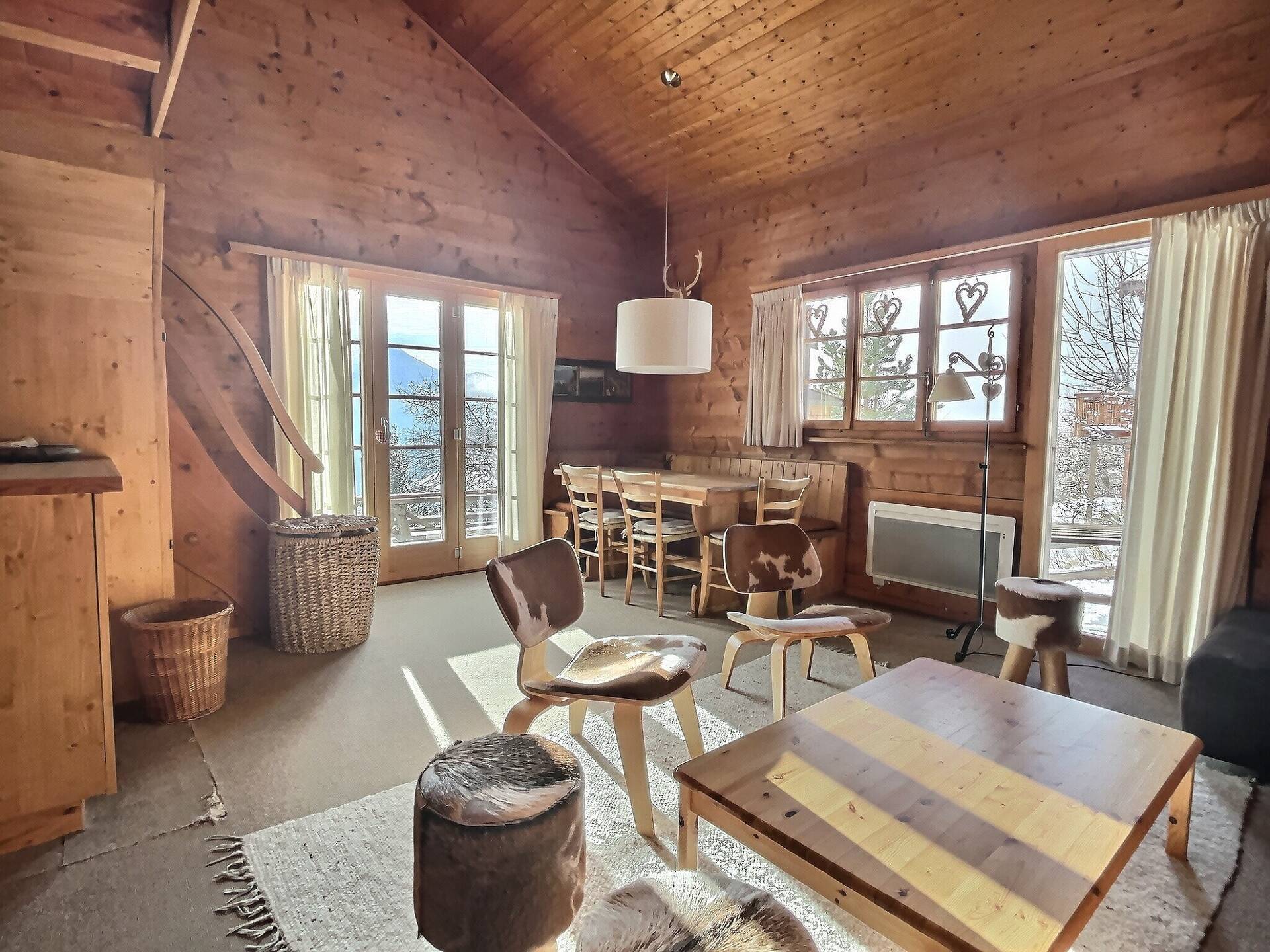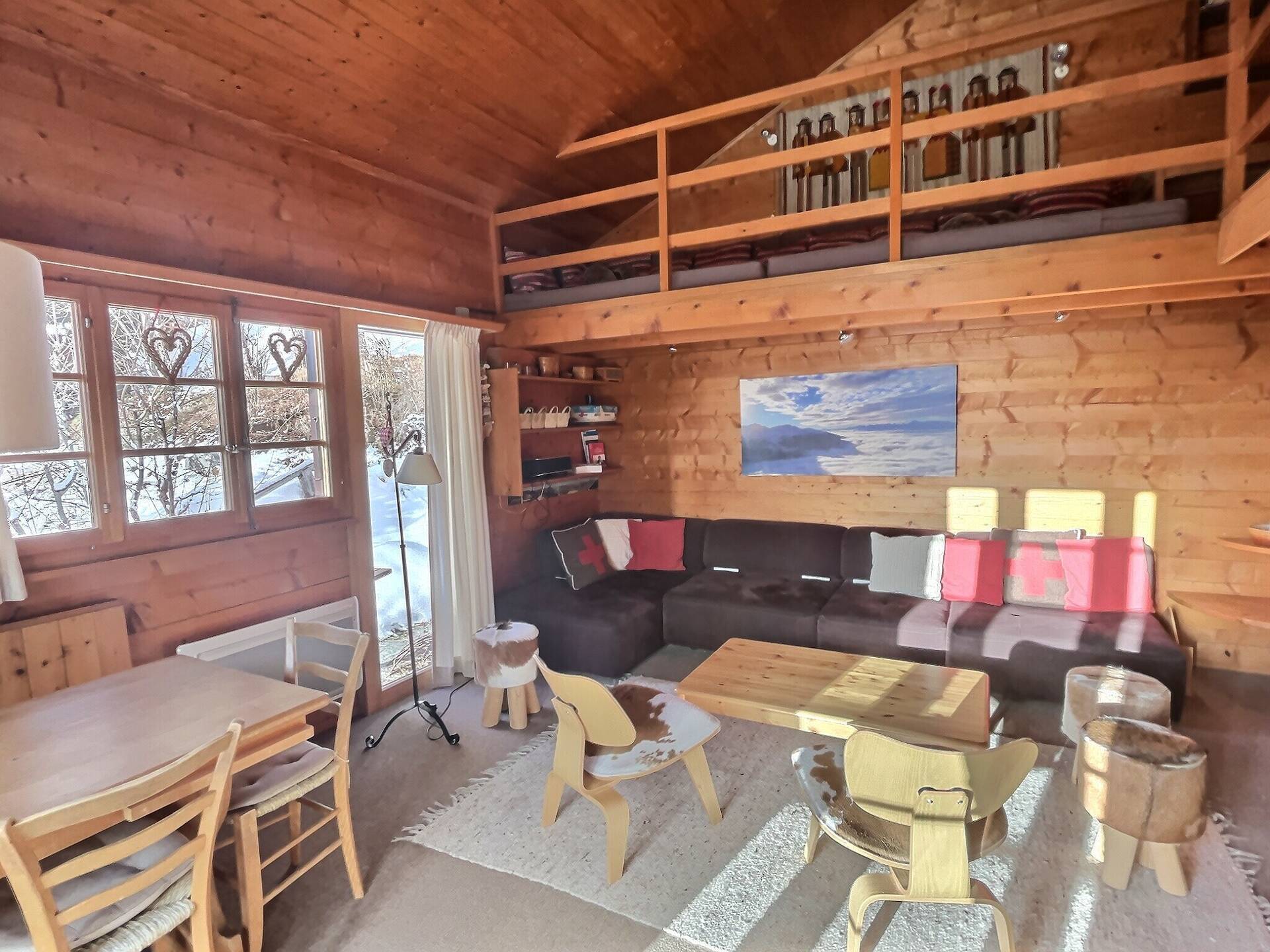 Extérieur : balcon- circulaire,-terrasse en bois avec mobilier de jardinIntérieur : 75m2, hall d'entrée , séjour avec fauteuils d’angle, coin à manger,Chambres : 1x1 lit double (140cm) au rez de chaussée, 1x lit double (140cm), 1x2 lit simple (90cm), armoires de rangement pour habitsSanitaires : 1x salle de bain au rez-de-chaussée et WC séparé à l’étage.Cuisine : ouverte avec lave-vaisselle, plaque vitro cérame, four, réfrigérateur, set fondue. Set raclette.Divers : 1x place de parc au parking communal, ANIMAUX NON ADMIS, NON FUMEUR,Linge : La location de linge est obligatoire. Compris dans le prix de location