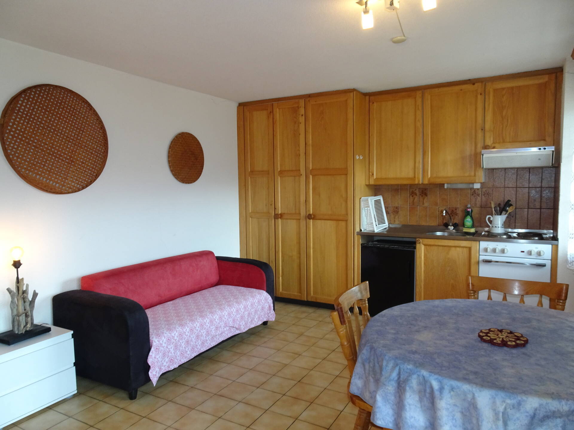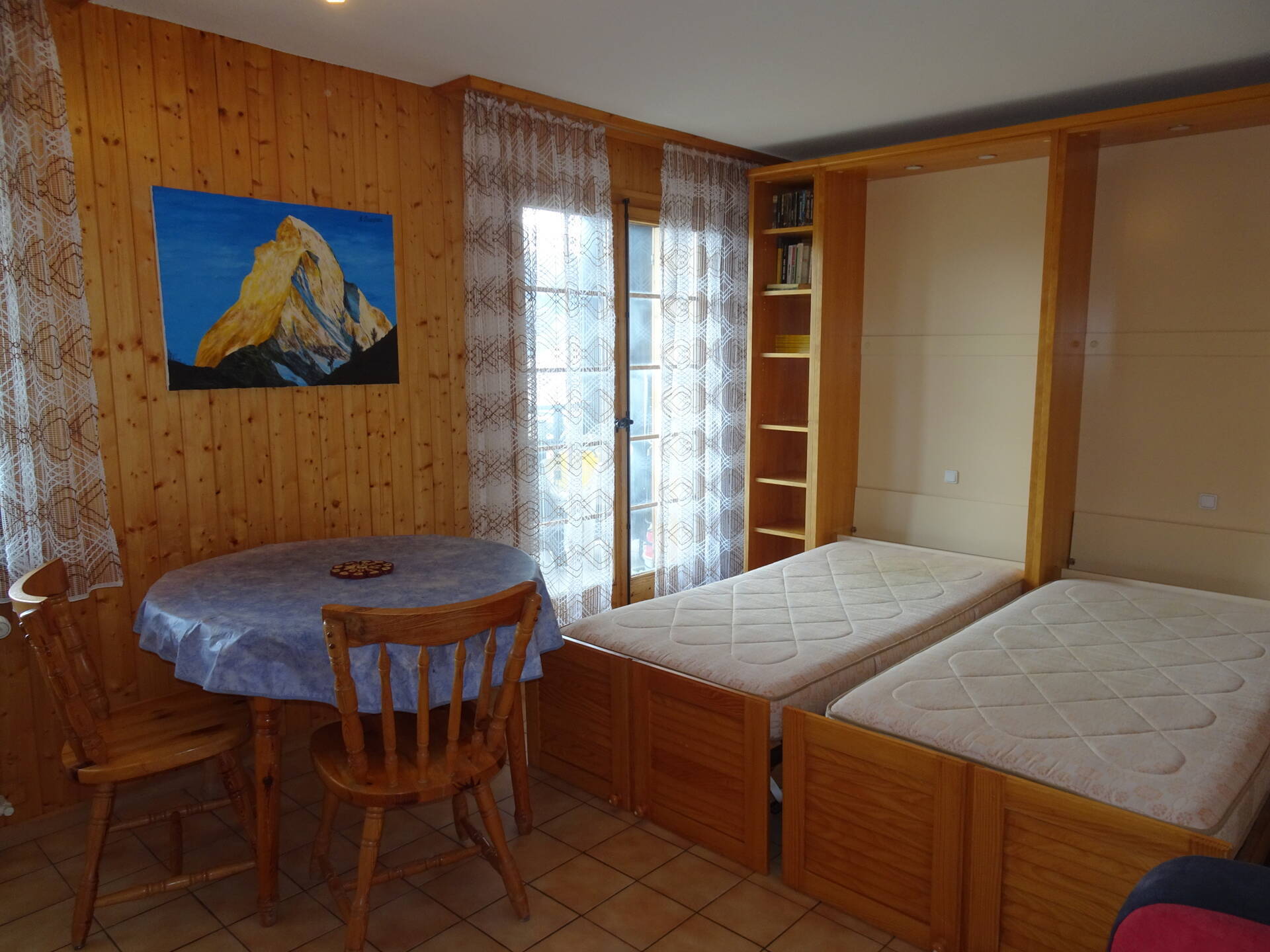 Intérieur : 30m2, séjour avec 2 lits-armoire, coin à manger